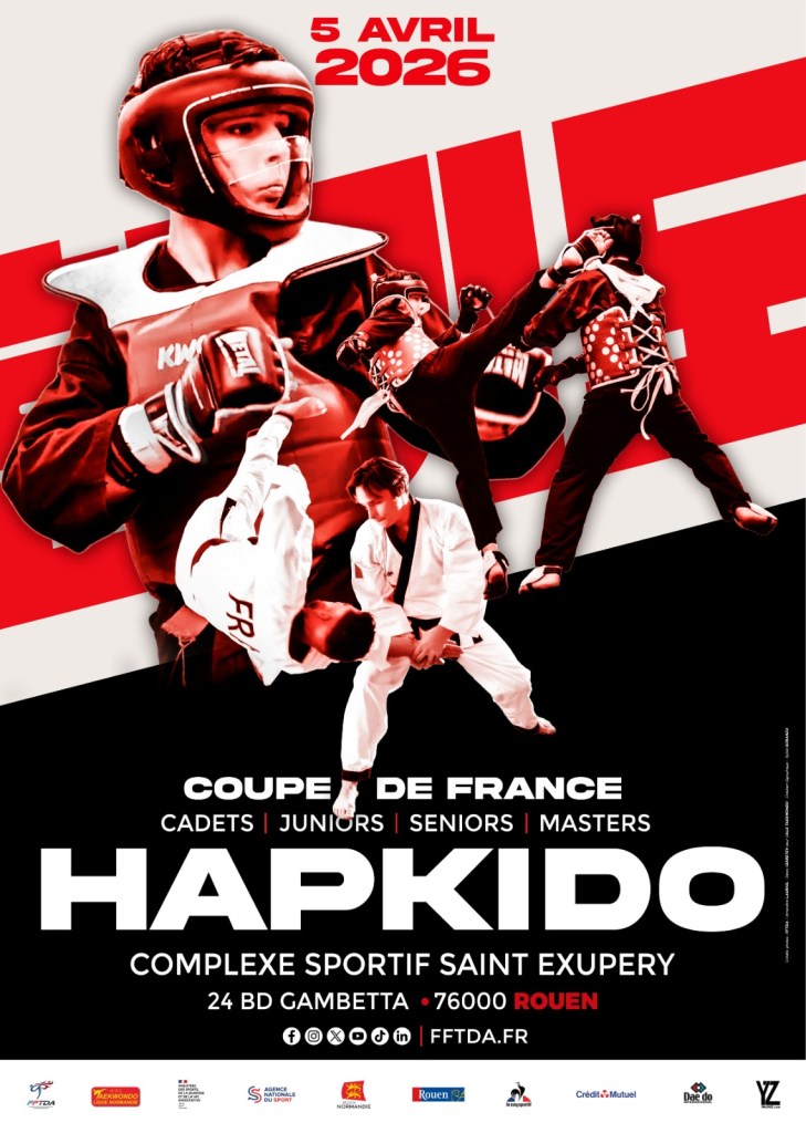 On l’attendait. Elle arrive la COUPE DE FRANCE HAPKIDO Combat et Technique, organisée par la FFTDA. Rendez-vous à Rouen le 5 avril 2026.